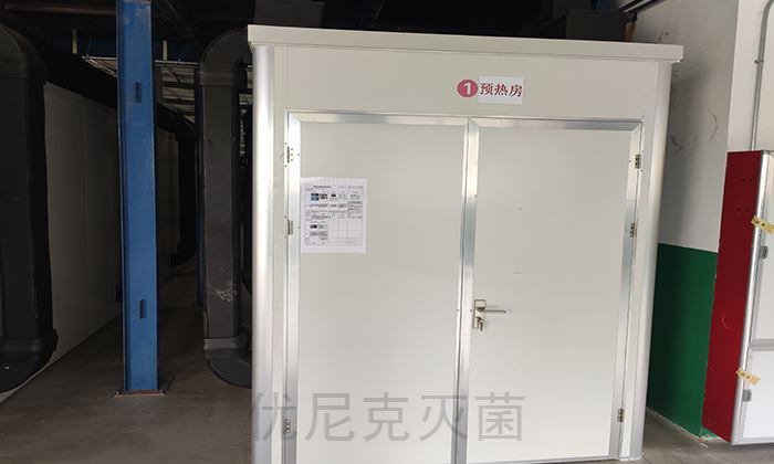 In order to meet the relevant requirements of effectively improving the pretreated products before ethylene oxide sterilization to reach the predetermined temperature and relative humidity. Our company designs the corresponding preheating room scheme: using circulating water radiator system, using rock wool self-extinguishing colored steel plate to build a relatively airtight space, and adopting efficient and energy-saving hot air internal circulation system to keep the corresponding temperature (above 45 ℃) and corresponding humidity (above 40%RH) in the preheating room uniformly, ensuring effective pretreatment and saving energy consumption within the target time. The whole process is automatically controlled by professional industrial control computer + SIMENS PLC, and the heating temperature is adjusted and controlled by PID. Heating temperature, humidity control, internal circulation fan start and stop time and other parameters can be set as needed, the whole process is recorded and archived by the computer, and can be called, viewed and printed at any time.