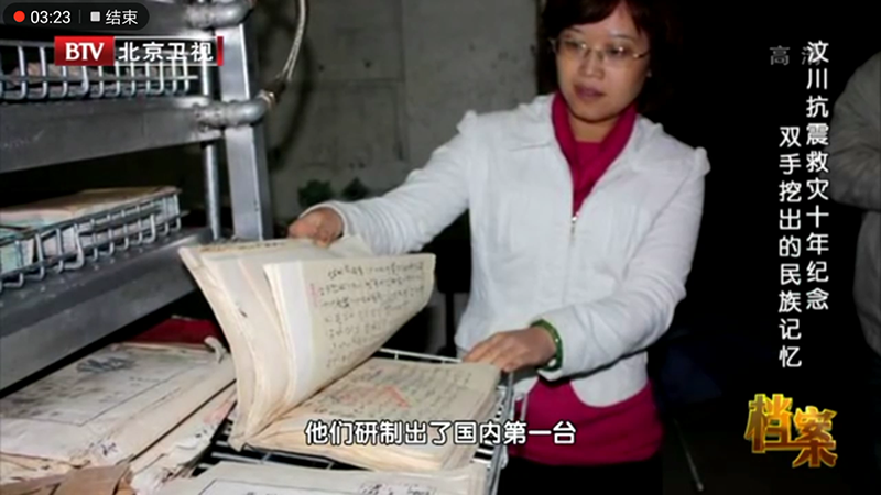 On May 10, 2018, Beijing Television's "Archives" program "memories of famous families dug up with both hands in commemoration of the 10th Anniversary of earthquake Relief in Wenchuan" told the story of rescuing the archives of the Qiang nationality in Beichuan 10 years ago and commemorating the earthquake relief in 2008 in many ways. Video link address:http://www.iqiyi.com/v_19rrddcn78.html