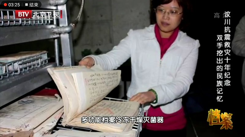 Beijing TV Station broadcasts China's first multi-functional archives sterilizer developed by our company for Beichuan Archives.